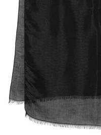 modal-wool blend scarf Highlights - Black - Modal-wool blend - Frayed edges - Rectangular shape - Sheer finish Made in Italy Composition Modal 77%, Polyester 13%, Wool 10% SIZE & FIT Measurement LENGTH 76.77 in(195 cm) WIDTH 28.74 in(73 cm) Washing instructions Dry Clean Only