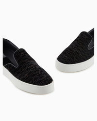 Round-toed slip-ons made of velvet with matching leather details. The monogram print adds distinction. Velvet upper Monogram print Leather details Rounded toe Rubber soles Made in Italy Product Code: X3Y007XR23500002