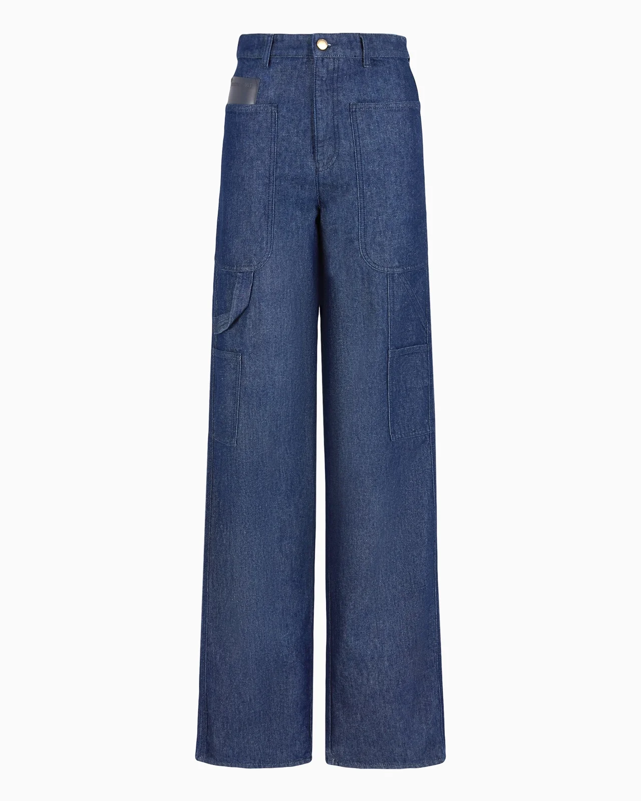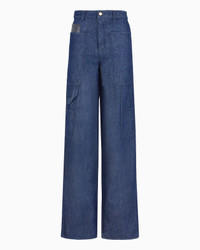 Cargo-style jeans featuring a mid-rise waist and wide, straight leg. A selection of pure cotton denim pieces that feel stiff and hard wearing, designed for everyday wear and suitable for the change in seasons. Product Code: 6D2J3D2DUHZ10941 Details Composition 100% Cotton Cargo style Mid-rise waist with belt loops Side patch pockets Logo leather coin pocket Straight cut Zip and button closure Side patch pockets Matching stitching Leather logo tag Back eagle plate Fitting The model is 178 cm tall and is wearing size 27