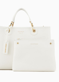 The Essentials selection makes a statement of enduring style: both elegant and practical, it works in numerous combinations on a wide array of occasions. MyEA Bag is Emporio Armani’s ultimate iconic bag: choose your style and embellish it with accessories that reflect who you are. Deer-print medium handbag with magnetic closure and screen-printed logo. The item is embellished with removable gold-tone carabiner clips and tags with embossed logo lettering that match the bag. Matching internal pouch with zip. With a pink detachable logo strap and leather interior. Measurements: 37.5 x 27 x 11.5 cm. Product Code: Y3D165YFO5B185219 Details Composition 100% Polyurethane Coated fabric Logo Solid colour Double handle Detachable shoulder strap Fully lined Detachable interior pouch