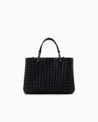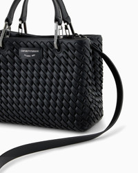 Small shopper bag made of interwoven leather, with magnet closure. Item embellished with logo clips, removable shoulder strap and internal zipped pouch. This item belongs to the MyEA line, the selection of iconic and exclusive Emporio Armani bags that are most representative of the label. Choose the piece and complete it with accessories from the line that suits your style. Measurements: 26 x 20 x 10 cm Interwoven leather Solid coloured Two handles Logo clips Logo patch Detachable shoulder strap Internal zipped pouch Product Code: EW000361AF12762UC001