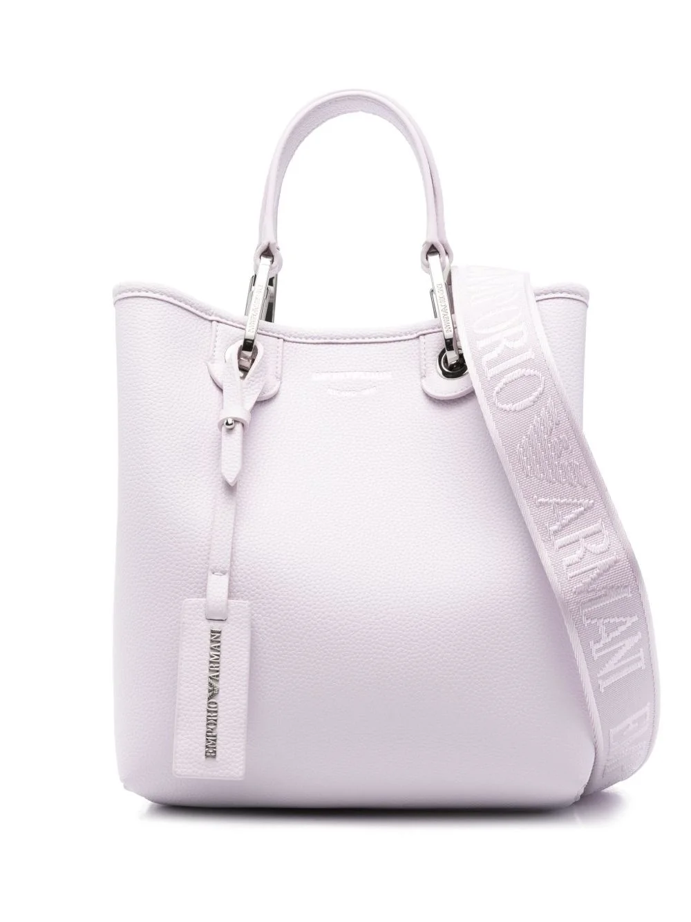 MyEA Vertical tote bag Highlights - Powder pink - Magnetic fastening - Two flat top handles - Adjustable detachable shoulder strap - Removable pouch Imported Composition Lining: Polyester 100%, PVC 100% Outer: Polyurethane 100% SIZE & FIT Model measurements Height 5 ft 11 in(1.8 m) Bust/Chest 33.07 in(84 cm) Hips 37.4 in(95 cm) Waist 25.19 in(64 cm) Measurement DEPTH 3.93 in(10 cm) HANDLE 4.33 in(11 cm) HEIGHT 9.44 in(24 cm) WIDTH 8.46 in(21.5 cm)