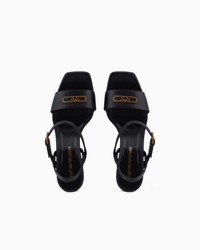 Sandals with heel, ankle strap and upper in nappa leather with a metal eagle logo. A versatile, clean-lined selection that is easy to wear. Heel height: 7 cm Nappa-leather upper Metallic eagle logo Buckle strap Made in Italy Product Code: EW002696AF14915UC001