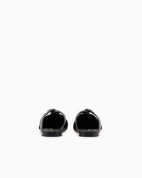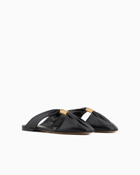Square-toed mules made from supple nappa leather. The style is embellished with a metallic logo detail that creates a special gathered detail on the front. Nappa leather Square toe Metallic logo detail Leather sole Made in Italy Product Code: X3R036XF27100002