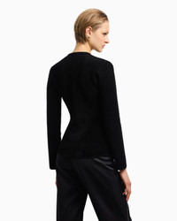 Chenille crew-neck jacket with front buttoning. The ottoman fabric, featured on the top part of the piece, creates refined all-over raised ribs, making it unique and adaptable to many outfits. Ottoman chenille Crew neck Front buttoning Long sleeves Peplum at the hem Product Code: EW001226AF19927UC001