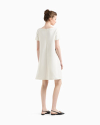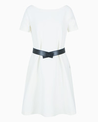 Short-sleeved boat-neck dress. The exclusiveness of the piece comes from various ways in which it is possible to wear the belt that comes with the item: in the first option, it can be worn without a belt, or with a belt that accentuates the waist. A third option is for the belt to be inserted inside the practical side opening leaving it partially visible at the front. The ottoman fabric creates refined raised ribs all over, making it unique and adaptable for multiple outfits. Ottoman jersey Boat neck Short sleeves Logo belt with press stud Side pockets Back zip closure Product Code: EW000632AF12364U0006