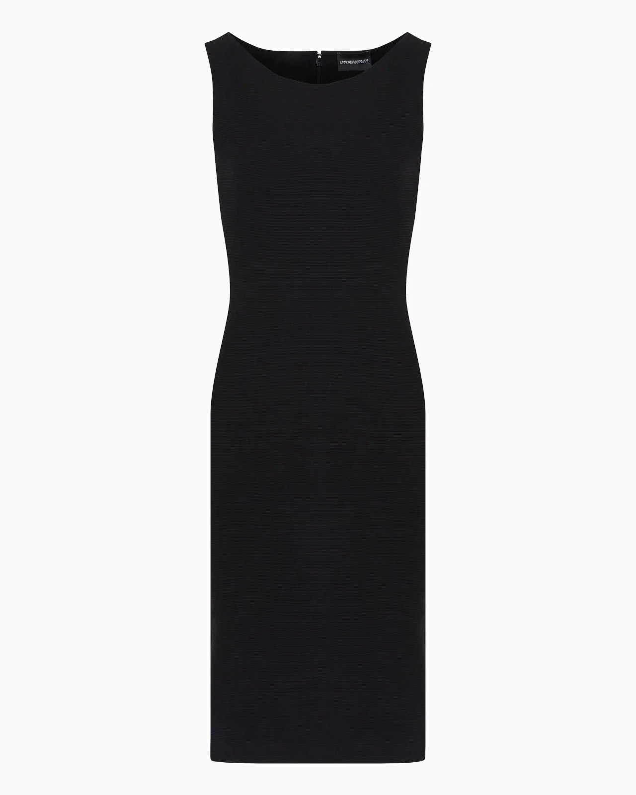 Sheath dress in stretch fabric that naturally follows the silhouette and exudes a sophisticated style that adapts to multiple occasions. The ottoman fabric creates refined raised ribs all over, making it unique and adaptable for multiple outfits. Ottoman jersey Sheath dress Rounded neckline Sleeveless Concealed zip fastening at the back Product Code: EW000636AF12364UC001