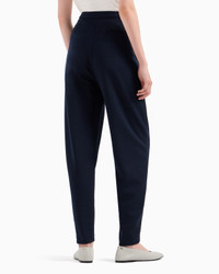 Oval-leg trousers with an off-centre fastening that creates a sort of front panel. Made of textured wool-blend jersey with a slightly embossed finish. Product Code: 6D2P8B2JZIZ10917 Details Composition 44% Acrylic 43% Wool 11% Polyamide 2% Elastane Jersey Off-centre fastening Zip, press-stud and button closure Oval leg Fitting The model is 178 cm tall and is wearing size 40/S (Italian Size)