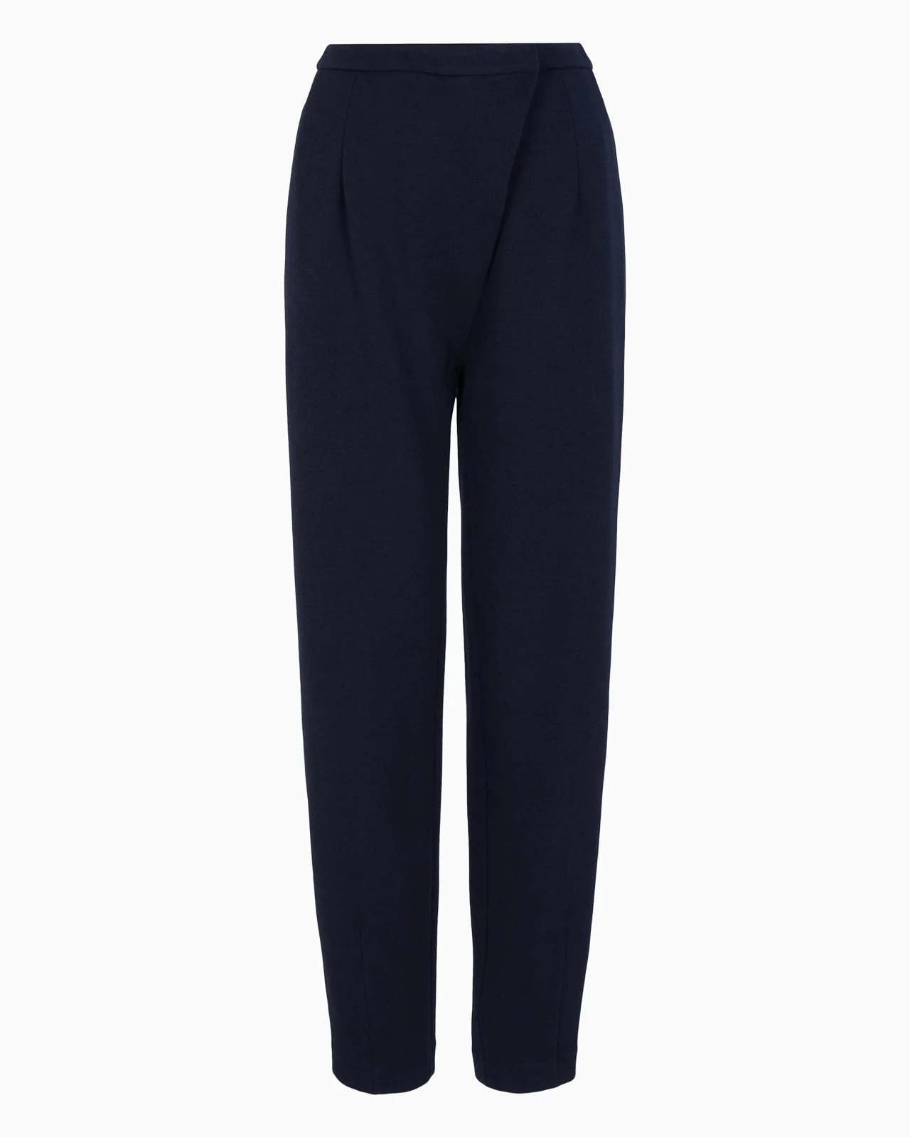 Oval-leg trousers in textured jersey with an off-centre fastening