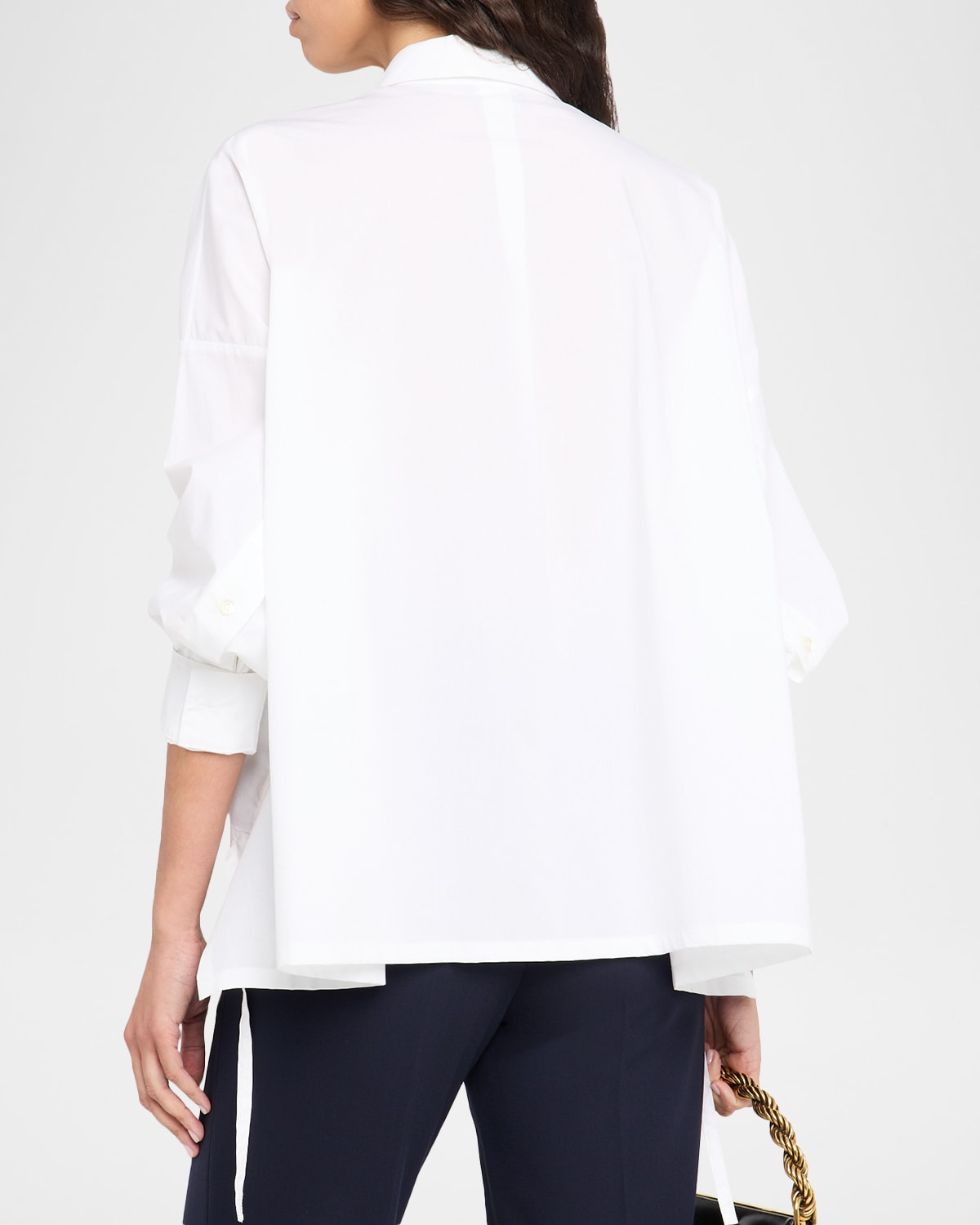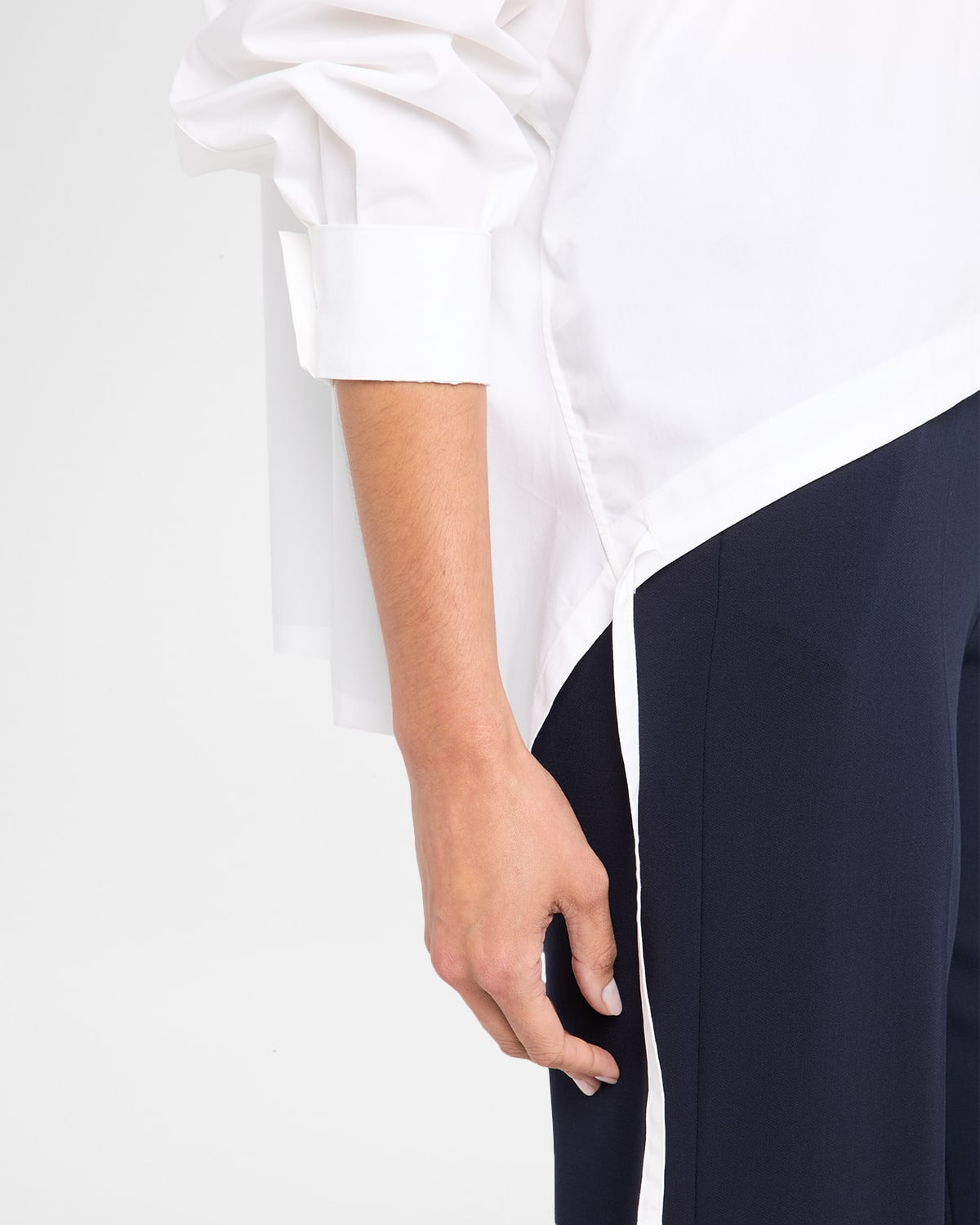 - Emporio Armani shirt in crisp cotton poplin - Point collar; button front - Drop shoulders - Long sleeves - Button cuffs - High-low hem - Oversized fit - Cotton - Dry clean - Imported