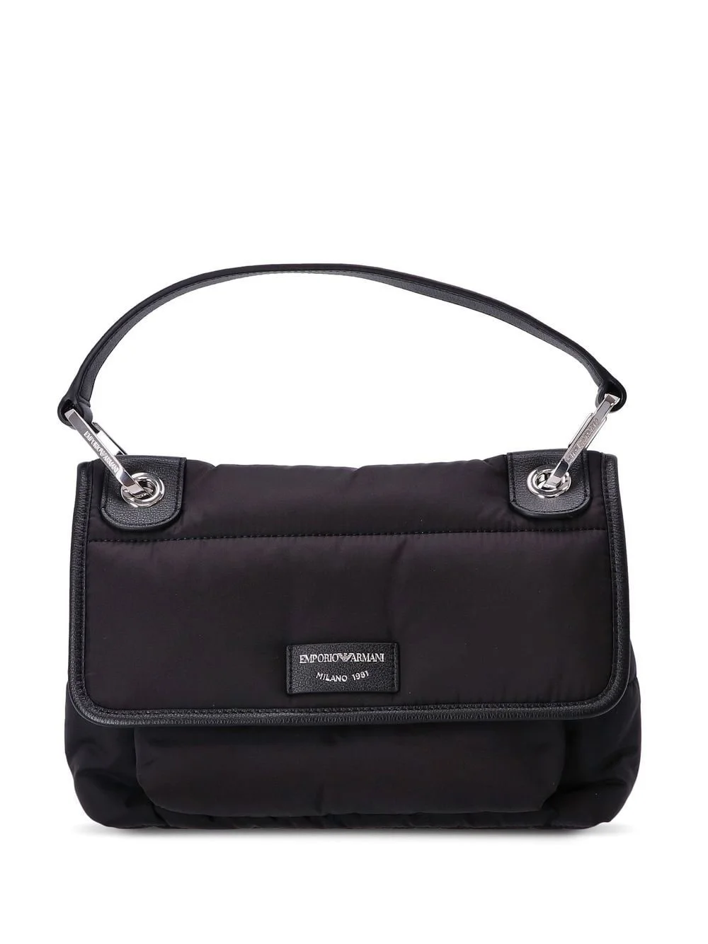 padded tote bag black padded design single flat top handle logo patch to the front main compartment Imported Composition Outer: Polyester 100% Lining: Polyester 100%