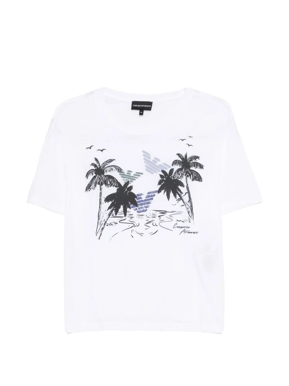 palm tree printed T-shirt Highlights - White - Palm tree print - Round neck - Short sleeves Imported Composition Cotton 100% Washing instructions Machine Wash