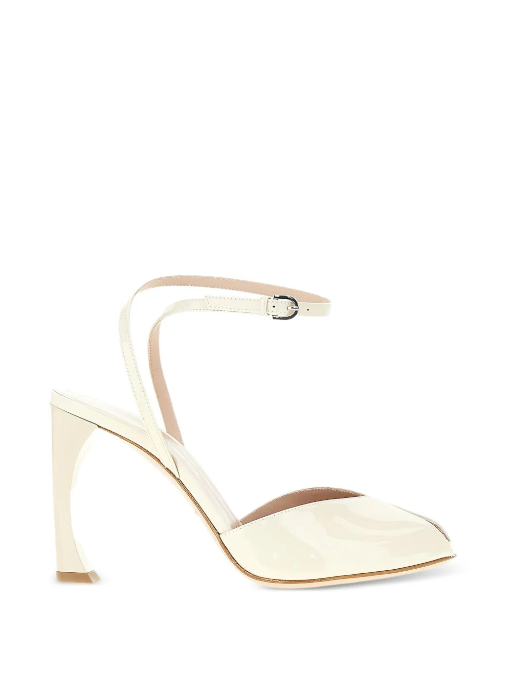 patent buckled sandals Highlights - Vanilla white - Patent finish - Buckled ankle strap - Peep toe - Sculpted heel Made in Italy Composition Calf Leather 100% SIZE & FIT Measurement HEEL 3.74 in(9.5 cm)