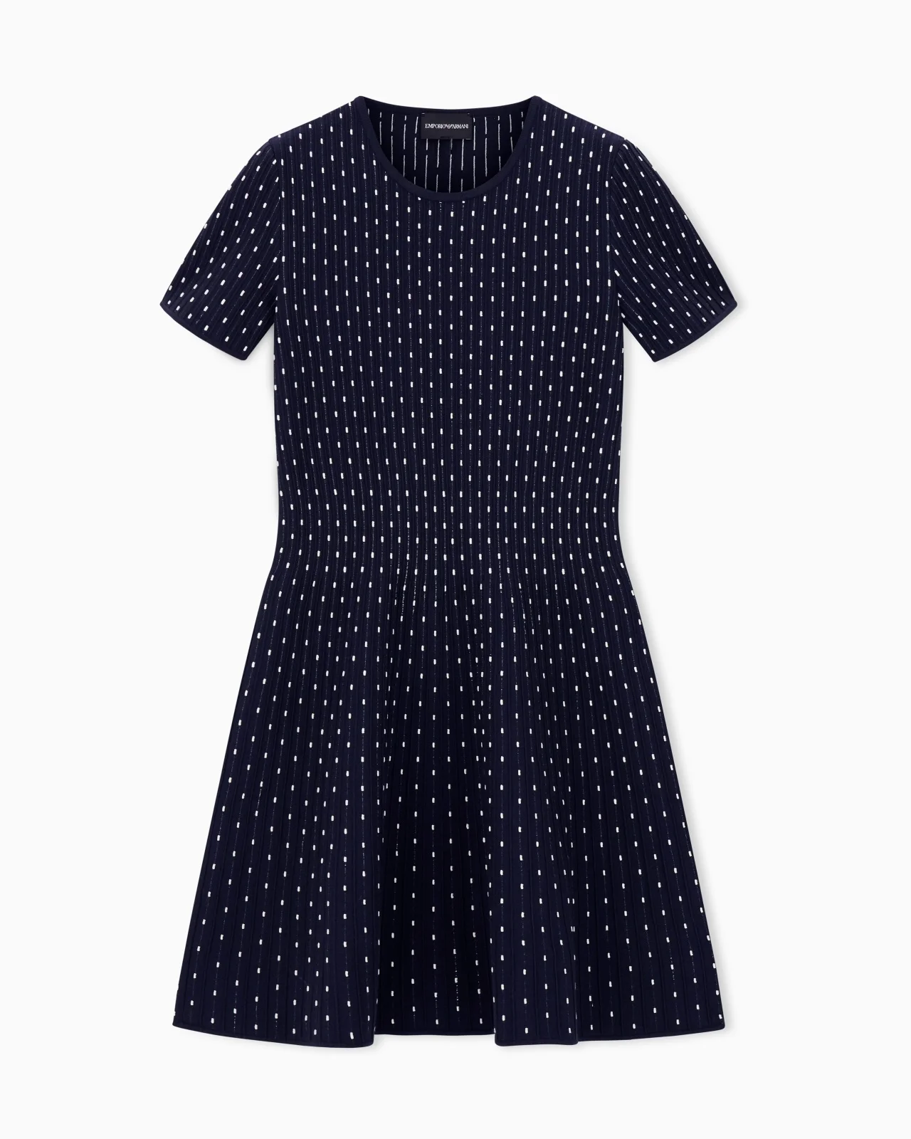 POLKA-DOT JACQUARD VISCOSE PLAIN-KNIT SHORT DRESS