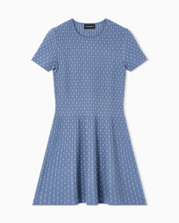 POLKA-DOT JACQUARD VISCOSE PLAIN-KNIT SHORT DRESS