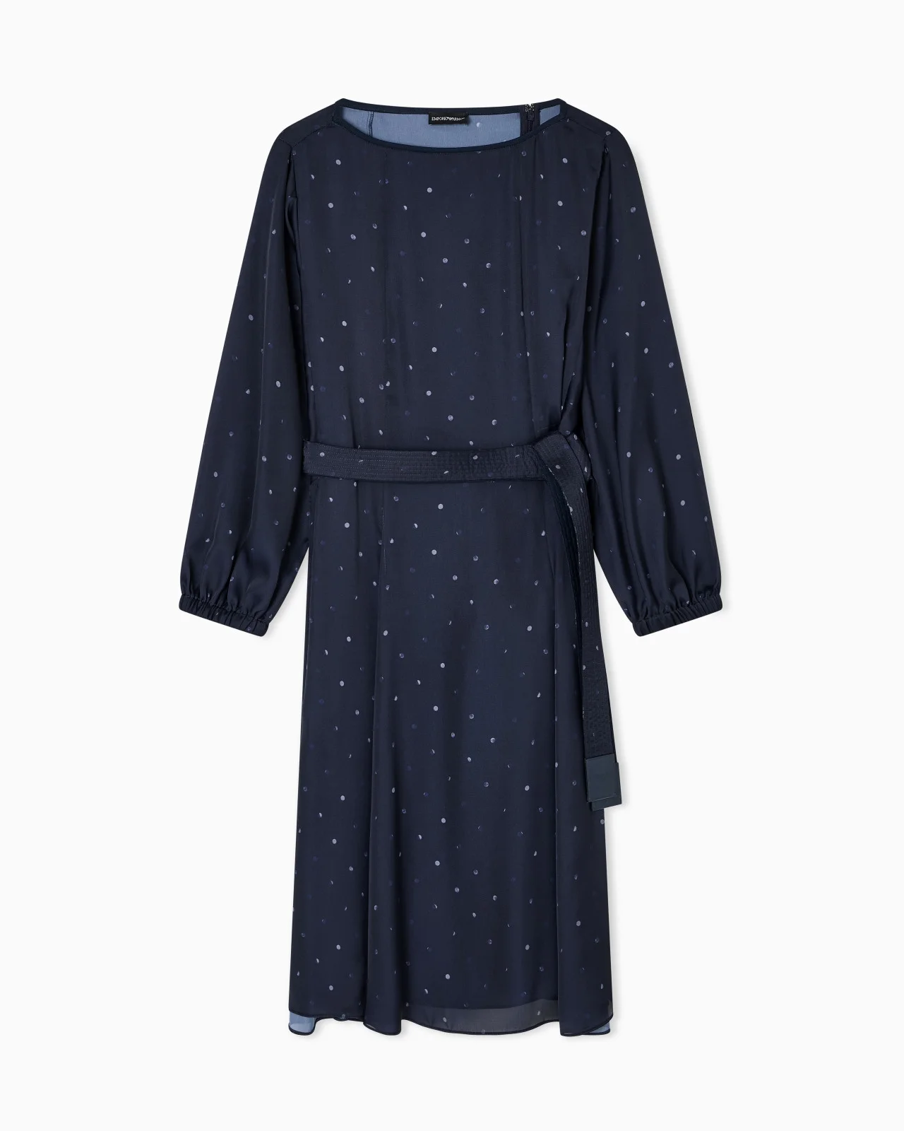 POLKA-DOT PRINT SATIN DRESS WITH BELT