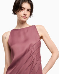 Satin sleeveless dress. The style is embellished with a front fringed detail that adds movement and elevates the exclusiveness of the piece. The item is part of this season’s new Polygon capsule collection, where vertical lines and geometric cut-outs capture the essence of a modern, elegant design. An offering that exudes post-modernist vibes, creating a perfect balance between functionality and aesthetic harmony: structured and refined creations are developed in melange grey tones that go hand in hand with the warmest undertones of burgundy. Satin Rounded neckline Sleeveless Fringe detail Back zip closure Product Code: EW002710AF19100UA322