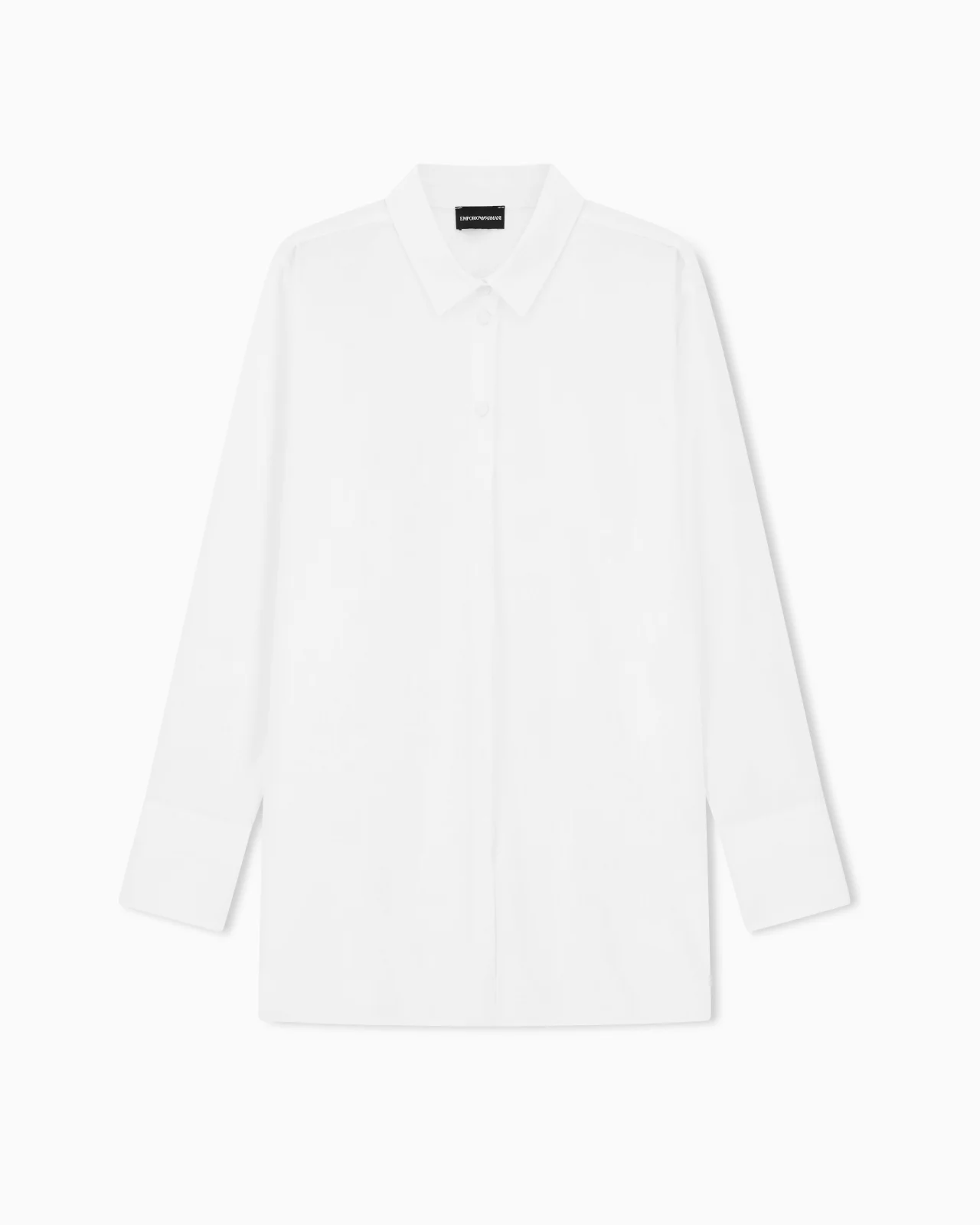 Fresh, pure cotton-poplin shirt with classic collar. The classic nature of the ultimate must-have item, returns intent on representing Emporio Armani style to its fullest. Poplin Classic collar Front buttoning Long sleeves Button cuffs Product Code: EW003128AF10010U0002