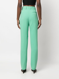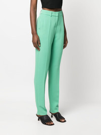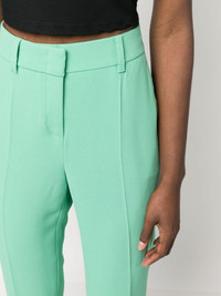 straight-leg crepe trousers Highlights - Mint green - Pressed crease - High-waisted - Belt loops - Concealed front fastening - Two side inset pockets - Rear jetted pocket - Slim cut - Straight hem Imported Composition Viscose 50%, Acetate 47%, Spandex/Elastane 3% SIZE & FIT Model measurements Height 5 ft 10 in(1.77 m) Bust/Chest 29.92 in(76 cm) Hips 34.25 in(87 cm) Waist 23.62 in(60 cm) FittingInformation Designed for a slim fit, these trousers offer a close fit at the waist, allowing a comfortable close fit and some movement over the leg Made from a midweight stretch fabric, this piece offers elasticity and flexibility when worn This piece fits true to size – take your usual size
