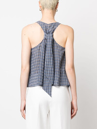 racerback tank top Highlights - Grey/blue - Grid pattern - Scarf detailing - U-neck - Sleeveless - Racerback - Straight hem Imported Composition Polyester 67%, Viscose 32%, Spandex/Elastane 1% SIZE & FIT Model measurements Height 5 ft 11 in(1.8 m) Bust/Chest 31.49 in(80 cm) Hips 36.41 in(92.5 cm) Waist 25.59 in(65 cm) FittingInformation Designed to be unstructured, offering a loose fit throughout Made from a lightweight stretch fabric, this piece offers elasticity and flexibility when worn This piece fits true to size – take your usual size