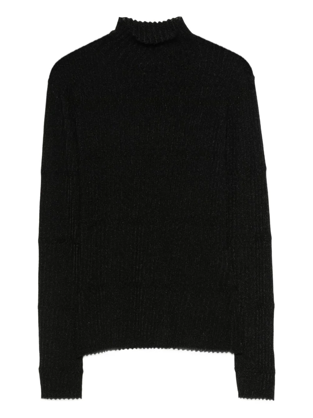 rib-knit high-neck sweater Highlights - Black - Ribbed knit - High neck - Long sleeves Imported Composition Viscose 85%, Polyester 15% SIZE & FIT Model measurements Height 5 ft 9 in(1.75 m) Bust/Chest 34.64 in(88 cm) Hips 36.61 in(93 cm) Waist 26.37 in(67 cm) Washing instructions Read Manufacturer Guidelines