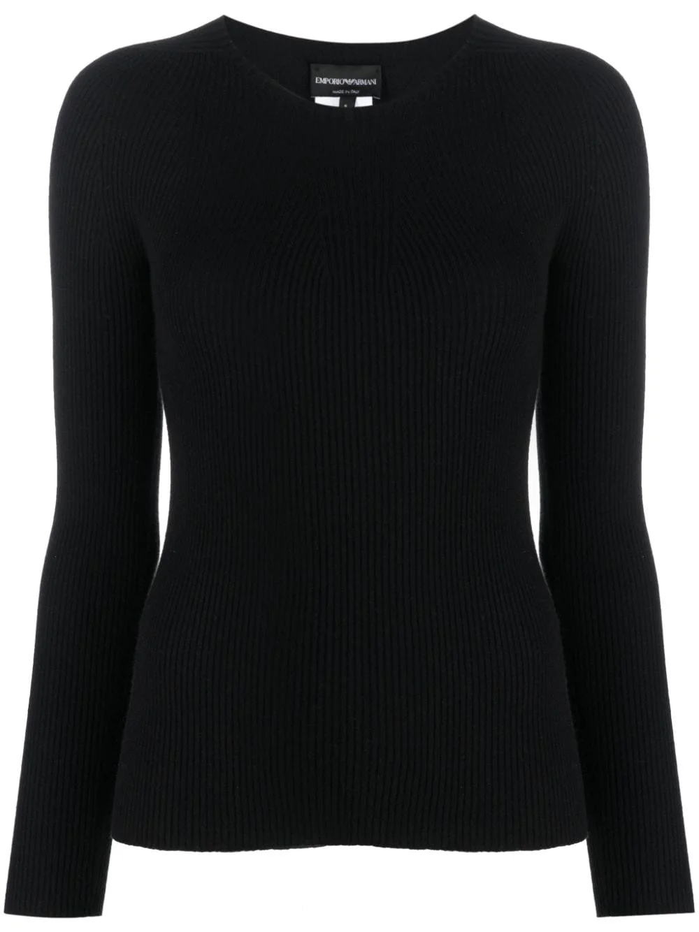 seamless ribbed-knit jumper Highlights - Black - Stretch-design - Ribbed knit - Seamless - Round neck - Long sleeves - Straight hem Made in Italy Composition Polyamide 52%, Viscose 38%, Cashmere 10% SIZE & FIT Model measurements Height 5 ft 10 in(1.78 m) Bust/Chest 30.7 in(78 cm) Hips 36.22 in(92 cm) Waist 25.59 in(65 cm) FittingInformation Designed for a close fit throughout Made with a midweight knit, this piece offers some stretch This piece fits true to size – take your usual size