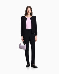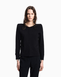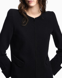 Jacket with front zip fastening, shoulder pads and side pockets with flaps. The piece is made of ottoman, a fabric creates refined raised ribs all over, making it unique and adaptable for multiple outfits. Ottoman jersey Full zip Crew neck Side welt pockets with flap Long sleeves Finished cuffs Unlined garment Product Code: EW001517AF12364UC001