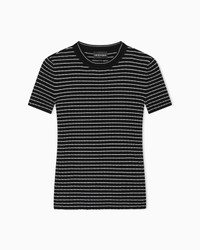 Crew-neck T-shirt made from a viscose blend in a rib-knit. The horizontal striped pattern creates a check effect that distinguishes the style. Rib knit Striped design Crew neck Short sleeves Product Code: EW001262AF18758MC007