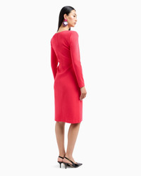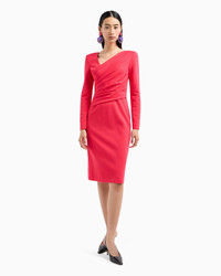 Figure-hugging dress with an asymmetric neckline created by a wrap over front design with dense draping over the bust, made of stretch Milano stitch fabric that ensures a close fit. Product Code: 6D2A8F2JFAZ10308 Details Composition 77% Viscose 17% Polyamide 6% Elastane Milano stitch Asymmetric collar Front draping Long sleeves Back concealed zip Knit lining in the bodice only Fitting The model is 178 cm tall and is wearing size 40/S (Italian Size)