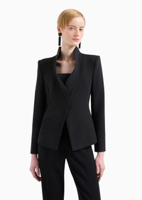 This women’s jacket fully represents Emporio Armani style: the contoured edges of the ruffle-effect lapels, with internal crinoline that ensures structure, give it a sophisticated and particularly chic style. The crepe cady fabric glides over the silhouette to enhance the wearer’s femininity. Product Code: EW000258TE104181UC001 Details Composition 50% Viscose 47% Acetate 3% Elastane Cady crepe Single-breasted Lapels with shaped edges and crinoline Concealed press-stud closure Long sleeves Satin lining Fitting The model is 178 cm tall and is wearing size 40/S (Italian Size)