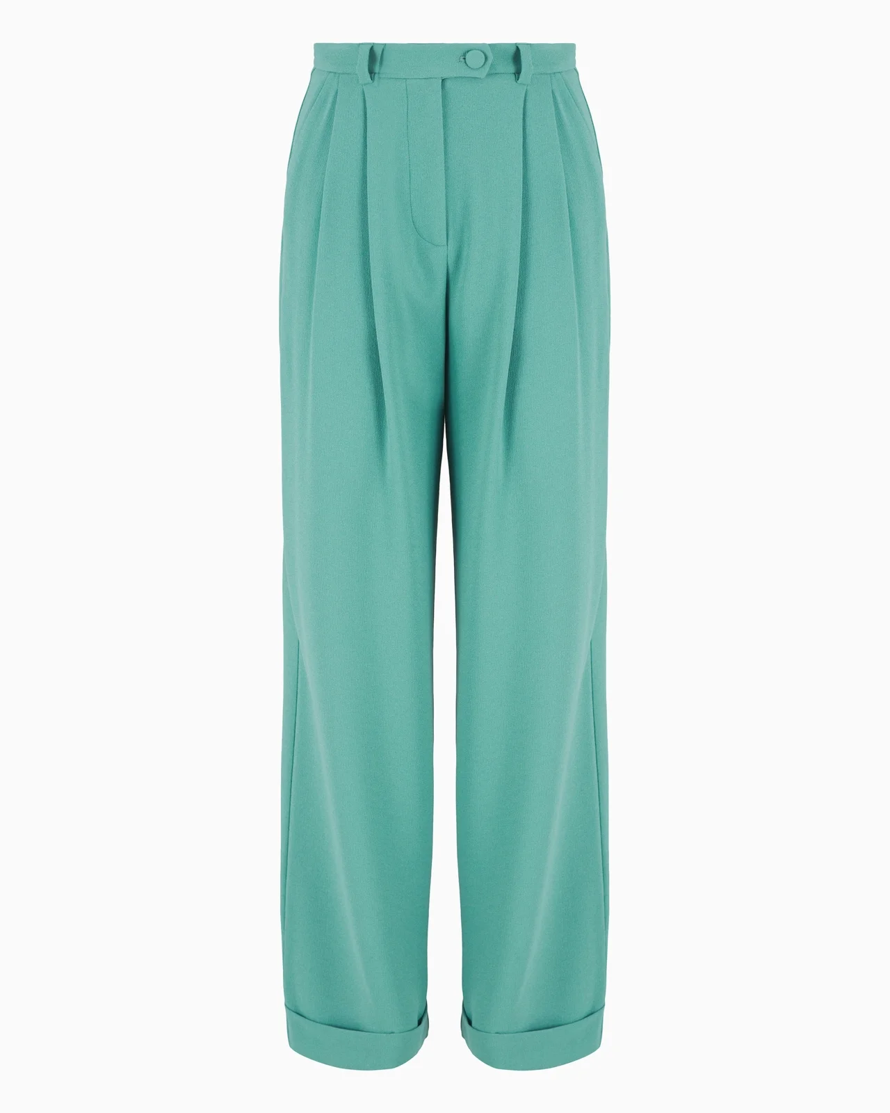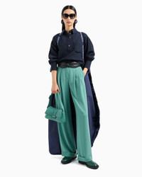 Trousers with tucks at the waist that create refined front pleats. Made of sable stretch fabric, a soft, voluptuous fabric that makes this a piece designed to be worn day&night. A fluid style that sways with every step, adding movement to the entire piece and conveying the notion of comfortable elegance. Product Code: 6D2P672NA7Z10556 Details Composition 95% Polyester 5% Elastane Sable fabric Waist with belt loops Closure with button, zip and back button Tucks with pleats Turn-ups Fitting The model is 178 cm tall and is wearing size 40/S (Italian Size)