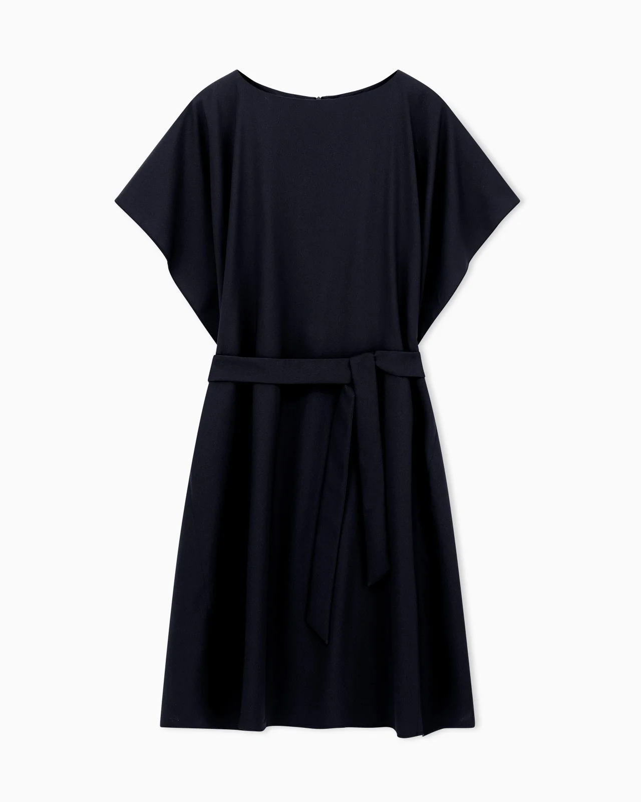 Tunic-style round-neck dress made of satin crepe, a fabric that adds a natural sheen to the piece. The style features cap-sleeves and a self-tie waist sash that enhances the silhouette. A feminine piece suitable for day&night occasions. Satin crepe Rounded neckline Cap sleeves Waist sash Concealed zip fastening at the back Unlined garment Product Code: EW001949AF15978UC001