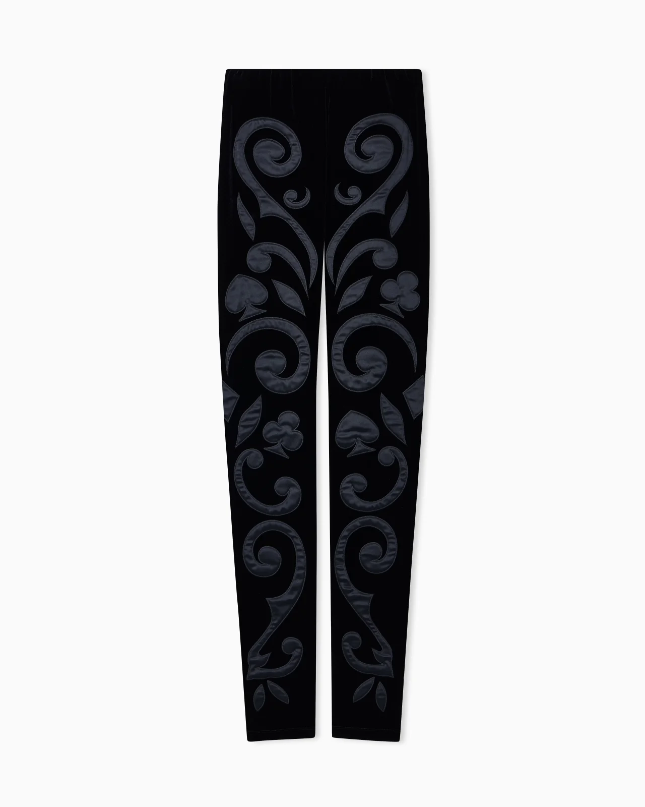 Cosy chenille-jersey elasticated-waist trousers. The distinctiveness of the piece comes from the satin intarsia embroidery, which creates a unique, all-over collection motif. The intriguing world of playing cards is the theme running through this season’s women’s collection. The Jeu de Cartes theme is playfully interpreted in different details of the collection: the elegance and refinement of Emporio Armani intertwine with the classic symbols of the playing-card suits, to create looks with a mysterious and sophisticated allure. Chenille jersey Satin intarsia collection embroidery Elasticated waist Zip at leg hem Product Code: EW003883AF14011UC001