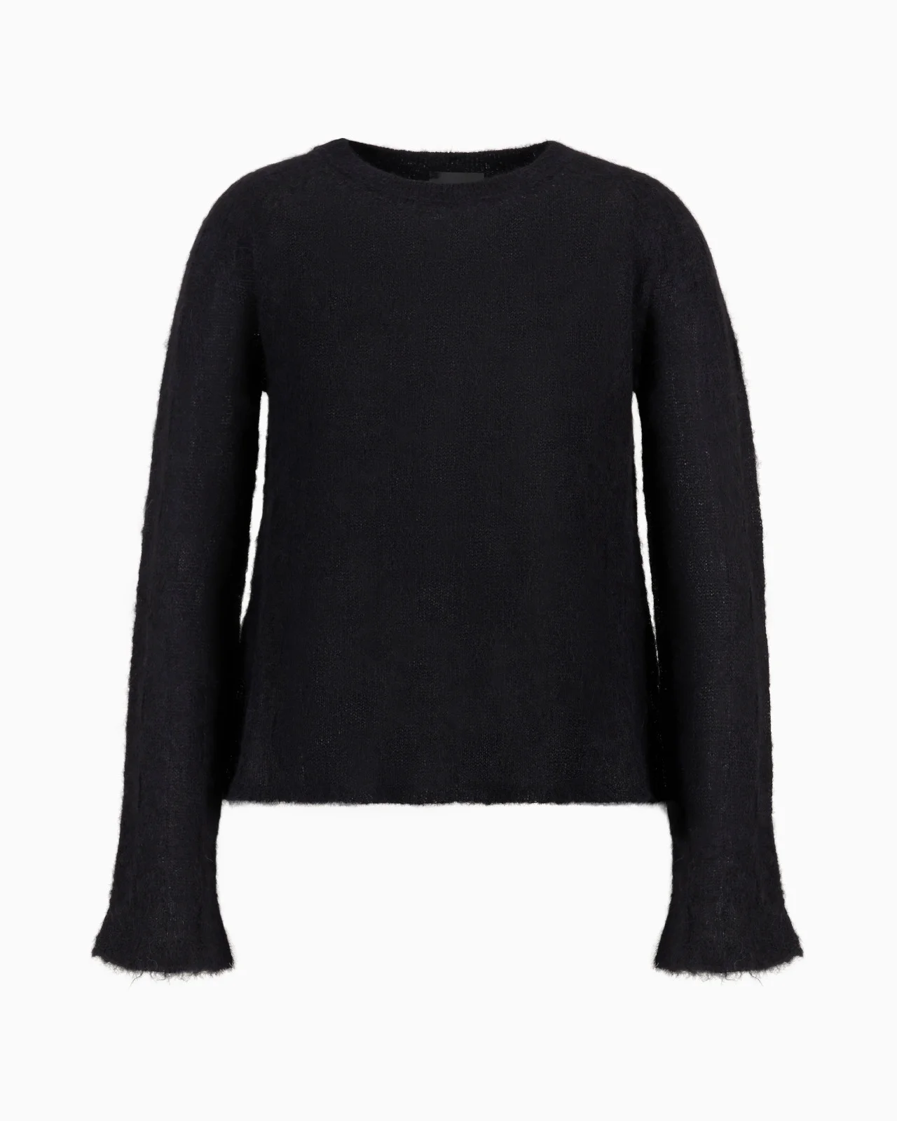 Round-neck jumper flared at the cuffs, made of a lightweight knit of warm alpaca wool with a matching check motif. The seamless construction elevates the comfort and snugness. Product Code: 6D2MW52M22Z10999 Details Composition 70% Alpaca wool 30% Polyamide Front and back plain knit Seamless Rounded neckline Long sleeves Flared cuffs Made in Italy Fitting The model is 178 cm tall and is wearing size 40/S (Italian Size)