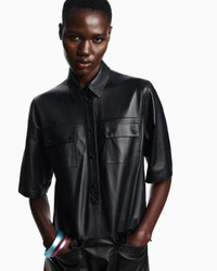 Dress with a classic collar, partial press-stud closure and wide short sleeves, made of exquisite 82% biodegradable nappa lambskin that is compostable and metal-free. The regular-fit style has practical patch pockets with a flap and press studs. Express your femininity in this dress that can be worn on a wide array of occasions. Nappa leather Classic collar Partial closure with leather-covered press studs Short sleeves Patch pockets with flap and press studs Unlined garment Product Code: EW002151AF17166UC001
