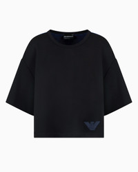 Round-neck, short-sleeved sweatshirt made of interlock jersey, a fabric with a fine, dense, extremely compact weave, making it especially warm, stretchy and durable. The piece features an iconic eagle embroidered on the left hem with a quilted nylon interior and a crinkle-effect cupro back. Stretch-jersey front Rounded neckline Short sleeves Eagle logo embroidery Cupro back Product Code: EW000488AF12911UC001