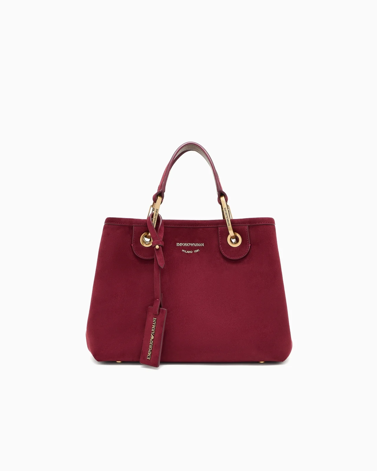 Small shopper bag with decorative fringes and magnetic clasp made of a supple suede-effect material. The item is embellished with removable logo snap clips and tags with embossed logo lettering that match the bag. Featuring a detachable logo chain strap and matching inner zip pouch. This item belongs to the MyEA line, the selection of iconic and exclusive Emporio Armani bags that are most representative of the label. Choose the piece and complete it with accessories from the line that suits your style. Measurements: 26 x 20 x 10 cm Faux suede Two handles Logo clips Detachable shoulder strap Internal zipped pouch Product Code: EW000361AF17730U5068