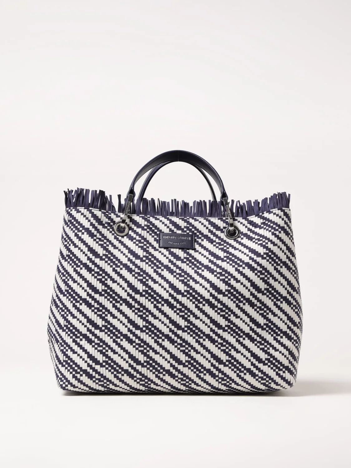 DESCRIPTION - Style: Chic - Details: With fringes - Lining: With removable pouch - Model: Woven - Shape: Rectangular - Handle: Double - Shoulder strap: Adjustable and removable - Logo: With logo - Materials: Polyester - Pattern: Two-tone stripes DETAILS AND CARE Composition MAIN FABRIC : POLYESTER 100% - SECOND FA SIZE AND FIT Sizes not available Designer code: EW000360AF12759 FB251 Giglio Code: 422464 Designer: Emporio Armani Collection: Emporio Armani Woman Category: Bags Emporio Armani