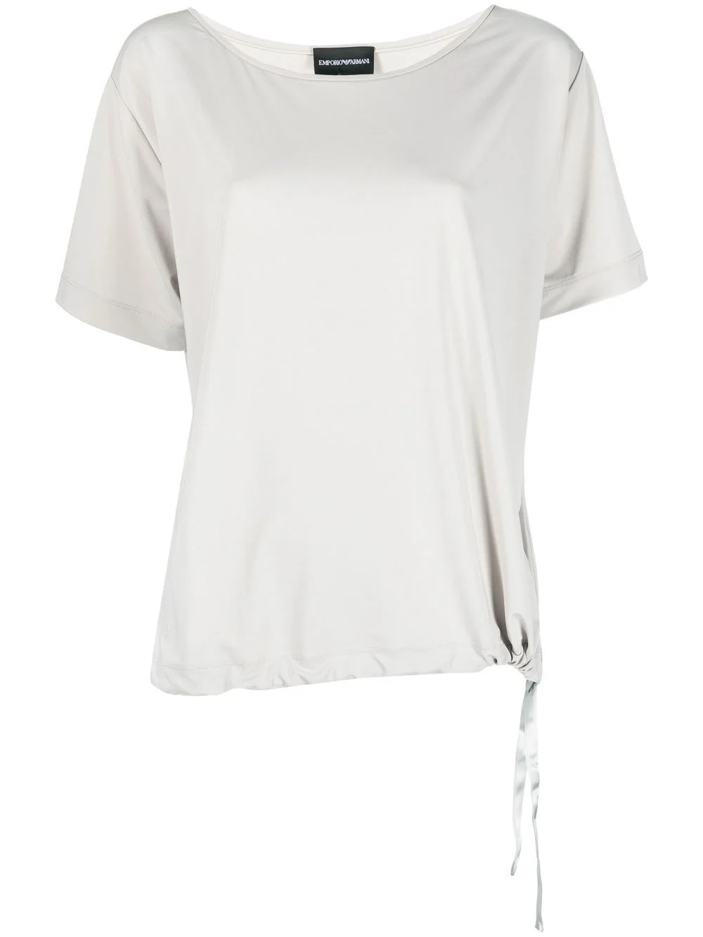 side-tie detail T-shirt grey stretch-jersey boat neck short sleeves side tie fastening drawstring hem Imported Composition Viscose 74%, Polyester 18%, Elastane 8% SIZE & FIT Model measurements Height 5 ft 10 in(1.77 m) Bust/Chest 29.92 in(76 cm) Hips 34.25 in(87 cm) Waist 23.62 in(60 cm) FittingInformation This piece fits true to size. We recommend you get your regular size Cut for a loose fit Made with a mid-weight stretch fabric
