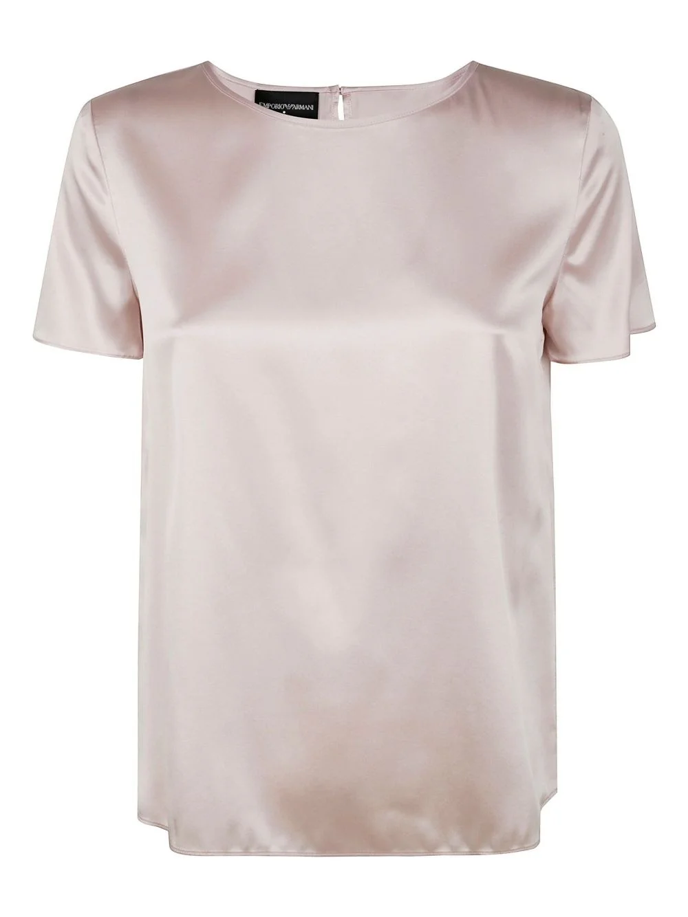 silk-satin blouse Highlights - Poudre pink - Rear teardrop fastening - Crew neck - Short sleeves Imported Composition Silk 100%