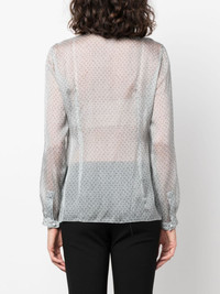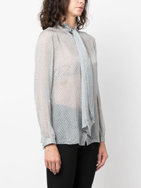 geometric-pattern silk blouse Highlights - Blue-grey - Silk - Semi-sheer construction - Geometric-pattern print - Pussy-bow collar - Drop shoulder - Long sleeves - Buttoned cuffs - Straight hem Imported Composition Silk 100% SIZE & FIT Model measurements Height 5 ft 9 in(1.76 m) Bust/Chest 33.07 in(84 cm) Hips 34.64 in(88 cm) Waist 25.59 in(65 cm) FittingInformation Designed to be unstructured, offering a loose fit throughout The tie fastening gives an adaptable and personalised fit Made from a lightweight non-stretch fabric This piece fits true to size – take your usual size