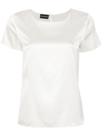 Silk top [ SKU: 10193440803 ] white stretch-silk satin weave round neck short sleeves straight hem single rear button fastening with fabric-covered button Composition Synthetic->Elastane6.0 % Natural (Other)->Silk94.0 % Reference 8N2K152NXXZ0101 Made in China