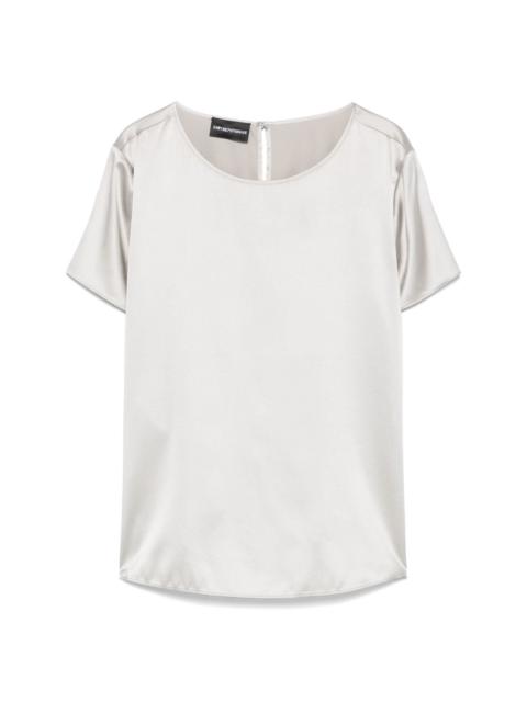 Silk top [ SKU: 10197416470 ] Black stretch-silk round neck short sleeves relaxed fit straight hem. Composition Silk 90%, Spandex/Elastane 10% Reference 8N2K152NXXZ0999 Made in China Size and Fit This piece fits true to size. We recommend you get your regular size Model is 1,75m / 5ft 8in wearing size 40 (IT)