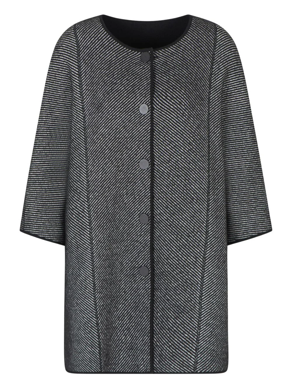 single-breasted coat Highlights - Dark grey - Button fastening - Three-quarter sleeves - Round neck - Straight hem Imported Composition Fabric 100% Washing instructions Read Manufacturer Guidelines