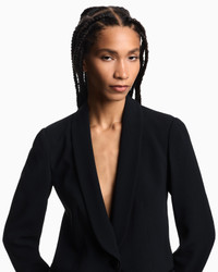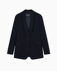 This jacket, made of flowing envers satin, gently follows the silhouette. Designed for the multi-tasking modern woman who requires an impeccable look. Domed button closure and satin-lined. The piece belongs to the Essentials selection, the Emporio Armani capsule collection that makes a statement of enduring style: both elegant and practical, it works for numerous combinations on a wide array of occasions. The colour palette includes the brand’s characteristic neutral shades, combined with a minimalist design to create a series of key pieces for the female wardrobe. Product Code: 0NG3DT020031999 Details Composition 70% Acetate 30% Viscose Envers satin Single-breasted Shawl collar Closure with satin-covered dome button Side welt pockets with flap Satin welts Long sleeves Button cuffs Satin lining Fitting The model is 178 cm tall and is wearing size 40/S (Italian Size)