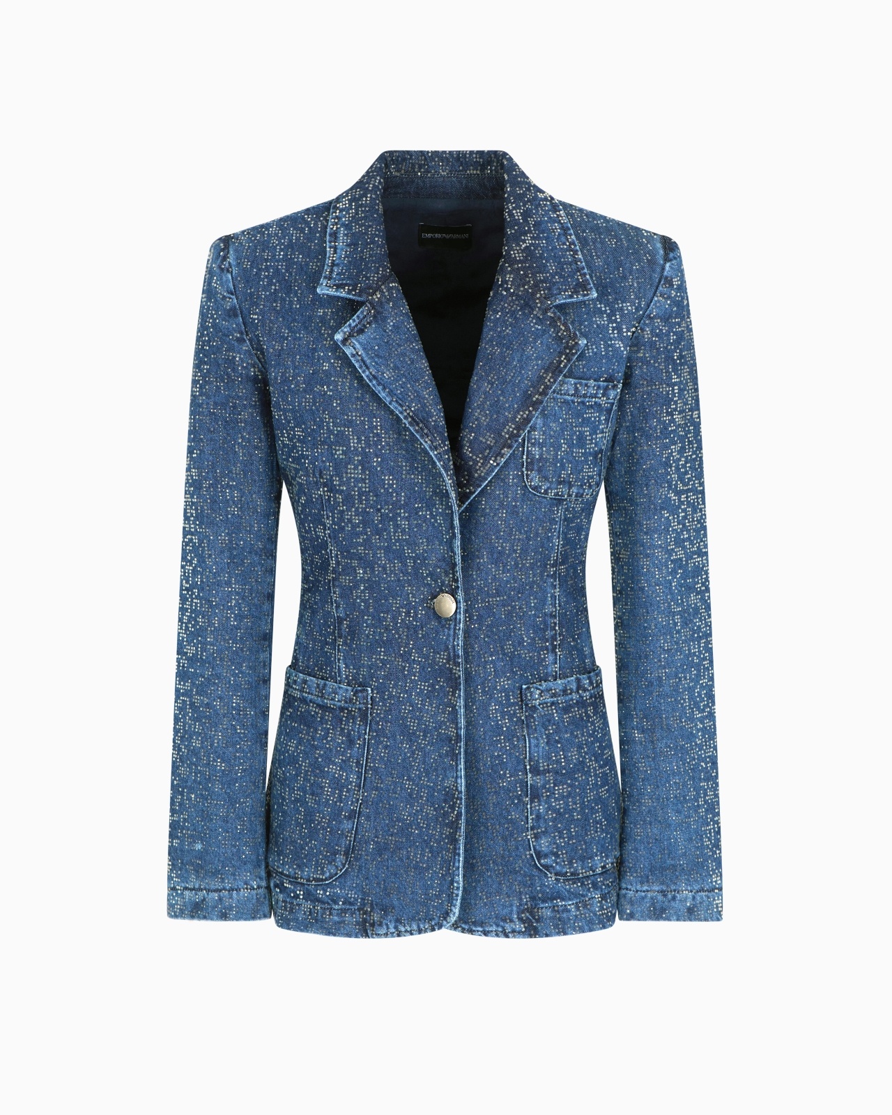 DENIM BLAZER WITH ALL-OVER RHINESTONES
