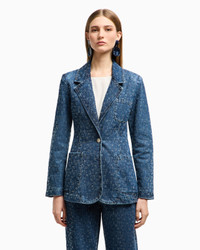 Single-breasted blazer with a lapel collar and front patch pockets. The piece is made of pure cotton denim and features the application of all-over matching rhinestones that elevate and embellish a style designed to be worn day&night. 11 oz denim All-over rhinestones Single-breasted Lapel collar One-button closure Three front patch pockets Long sleeves Button cuffs Matching stitching Slit at the back Half-lined garment Product Code: EW000741AF13298MB001