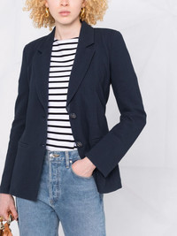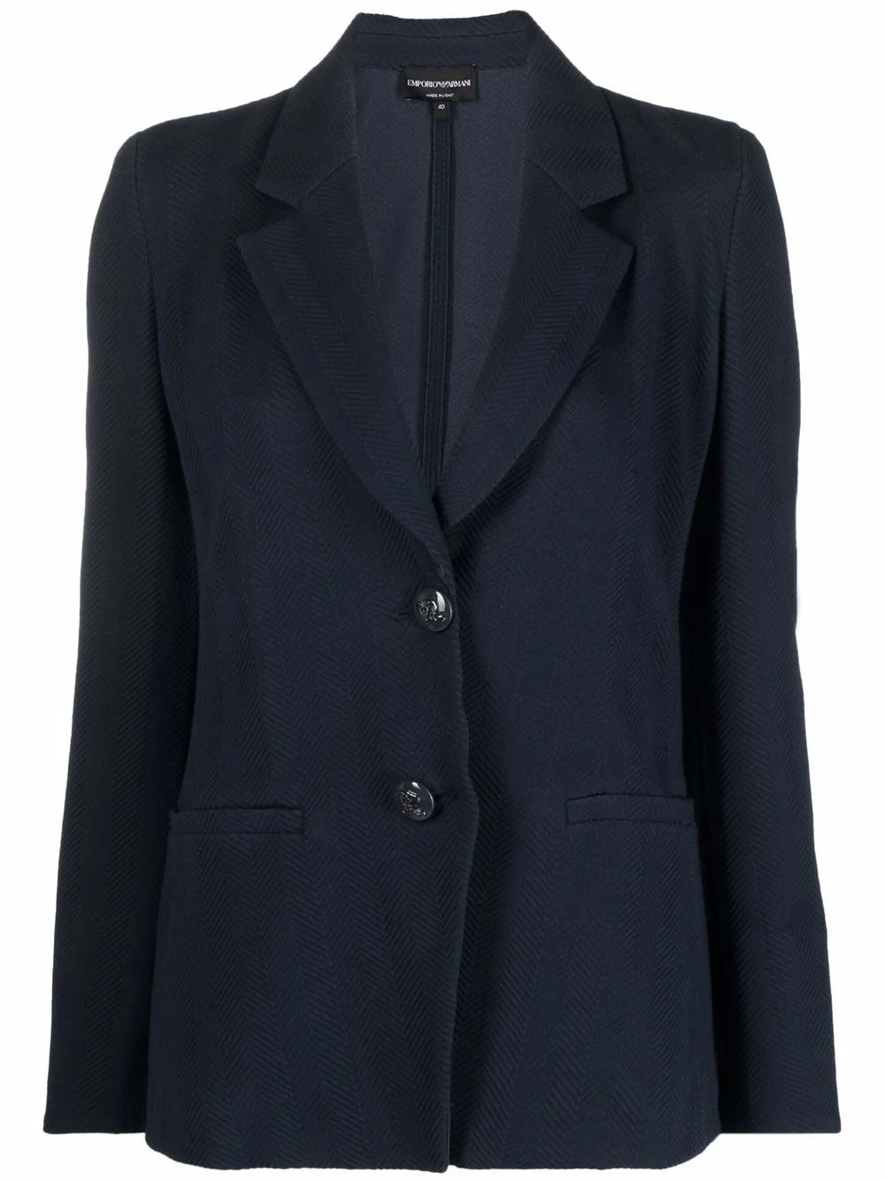 single-breasted twill jacket navy blue cotton blend notched lapels front button fastening long sleeves straight hem Made in Italy Composition Outer: Cotton 67%, Polyamide 28%, Elastane 5% Lining: Polyester 77%, Silk 18%, Polyamide 5% SIZE & FIT Model measurements Height 5 ft 9 in(1.75 m) Bust/Chest 34.64 in(88 cm) Hips 36.61 in(93 cm) Waist 26.37 in(67 cm) FittingInformation This piece fits true to size. We recommend you get your regular size Cut for a slim fit Made with a mid-weight fabric