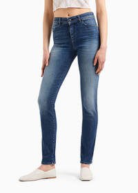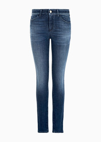 The modern style of these jeans is enhanced by the modern high-waist fit and by the stretch denim that enfolds the leg, creating a skinny effect. Matching stitching and a distinctive signature logo embroidered on the back pocket. The fabric’s “worn” treatment elevates the garment with a modern touch. It stands out thanks to the signature logo embroidered on the back pocket. Slim fit. Product Code: 3D2J182DM3Z10942 Details Composition 98% Cotton 2% Elastane Slim fit High waist with belt loops Five pockets Tapered leg Zip and button closure Signature logo embroidery on the back Matching stitching Fitting The model is 178 cm tall and is wearing size 27