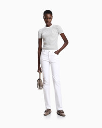 High-rise, skinny-leg jeans made from stretch cotton comfort bull fabric. These high-waisted, stretch denim jeans are defined by a modern, form-fitting style. Slim fit. The piece belongs to the Essentials selection, the Emporio Armani capsule collection that makes a statement of enduring style: both elegant and practical, it works for numerous combinations on a wide array of occasions. The colour palette includes the brand’s characteristic neutral shades, combined with a minimalist design to create a series of key pieces for the female wardrobe. Product Code: 8N2J182NV3Z10100 Details Composition 98% Cotton 2% Elastane Slim fit Waist with loops Five pockets Skinny leg Zip and button closure Matching stitching Leather logo tag Eagle plate Fitting The model is 178 cm tall and is wearing size 27